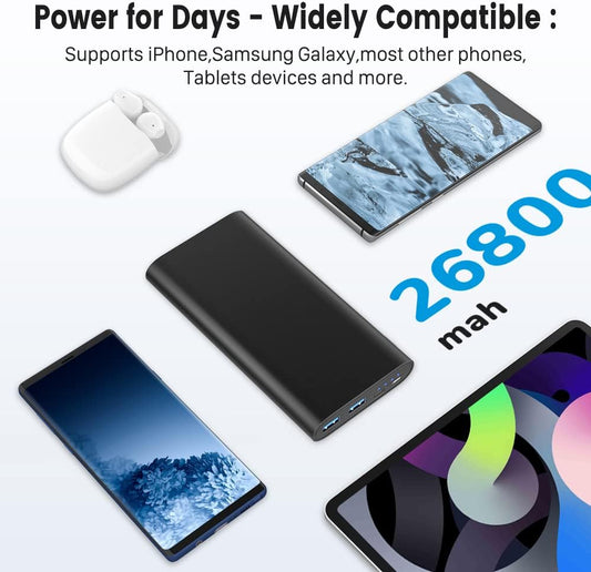 26,800mAh Portable Charger Power Bank, Dual USB W/Usb-C Fast Charging Battery Pack